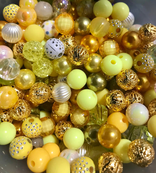 Yellow bubblegum beads, 8mm acrylic assorted mix bead soup Yellows and golds theme mix styles bead mix