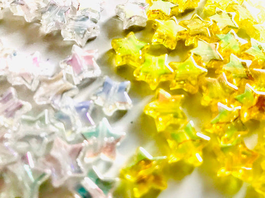 Star bead, acrylic Yellow or clear AB spacer bead with iridescent sheen