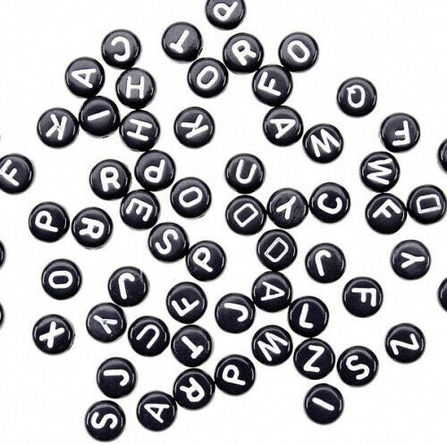 Black alphabet beads, acrylic letter Beads Round 7mm with white letter, choose your letter or bulk beads, DIY bracelet beads