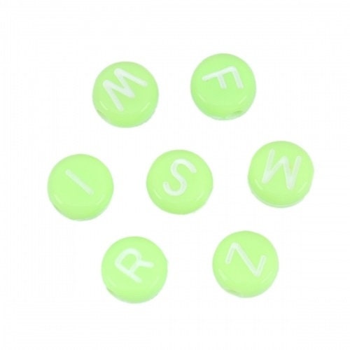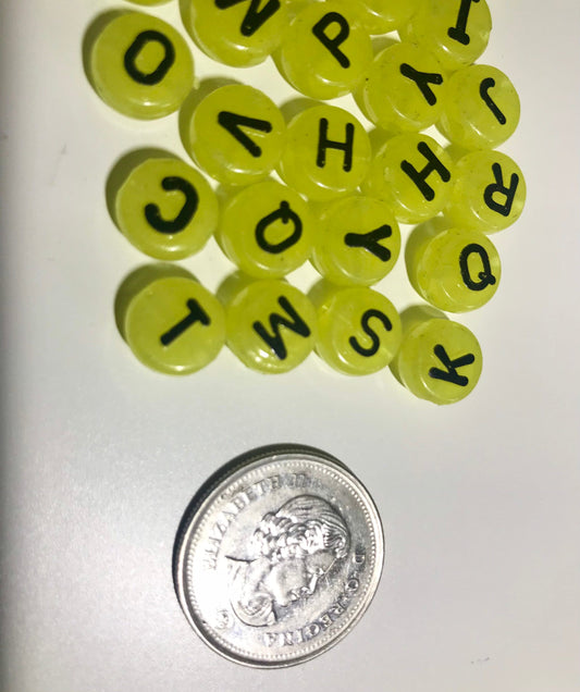Alphabet bead, clear green with white letters, 7mm round letter beads, choose your letter or bulk beads, DIY bracelet beads