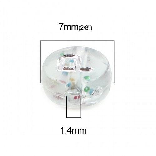 Alphabet bead, Clear with silver glitter , 7mm round letter beads, choose your letter or bulk beads, DIY bracelet beads