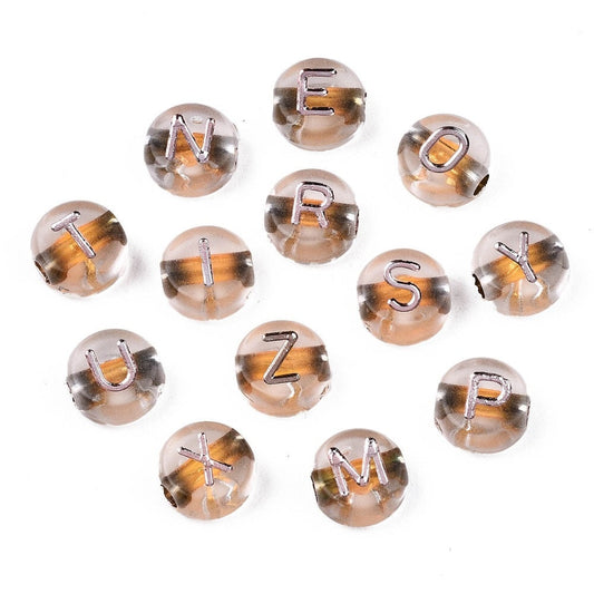 Clear letter with brown and silver alpabet Beads Round Acrylic 7mm letter beads Pick your beads bulk bead lot clear letter lot