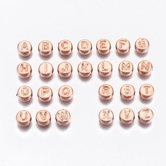 Rose gold alphabet bead acrylic beads imprint letter Beads Round 7mm bead , pick letter or bulk, no color imprint on letters