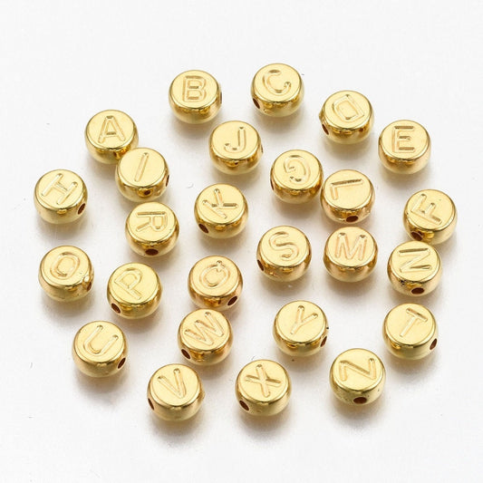 Gold alphabet bead with letter imprint metallic letter Beads Round Acrylic 7mm bead, Pick letter or bulk, no color imprint on letters