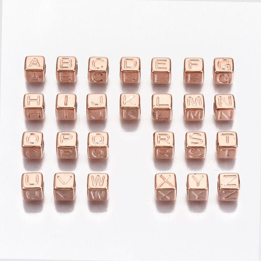 Rose gold Alphabet Cube, Metallic square Beads Acrylic 7x7mm, choose letter or bulk beads for bracelets