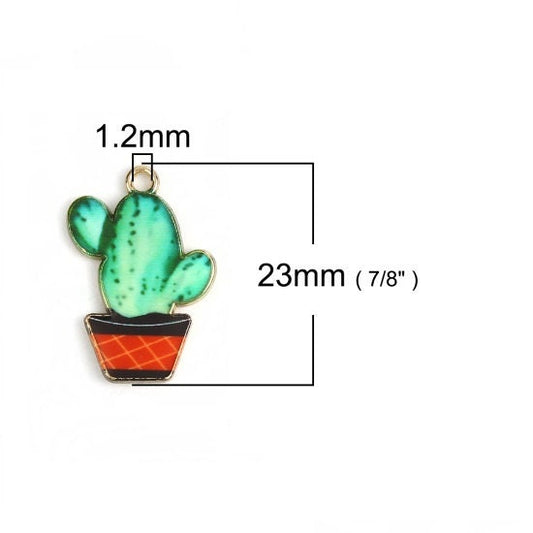Cactus charm gold back enaml charm desert style charm nature charm green and gold enamel topped