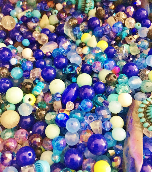 Blue bead soup mix, bulk bead mix blue creams Bead Mix Glass assorted styles beads in different sizes and styles clear opaque mix