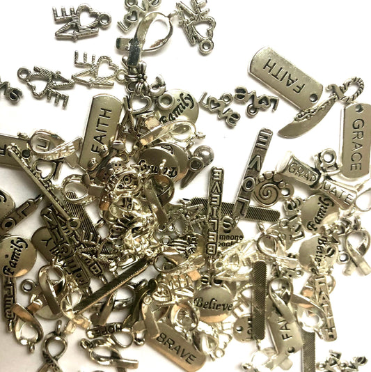 Inspiration charm mix, charms with words and phrases, love and hope charms, mix of charms Silver charms mix jewelry finding