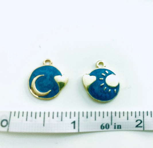 Galaxy moon charm, enamel swirled with heart gold plated charm
