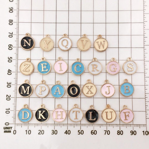 Pink enamel letter charms, full alphabet Set 26 charms, double sized with gold plated edges