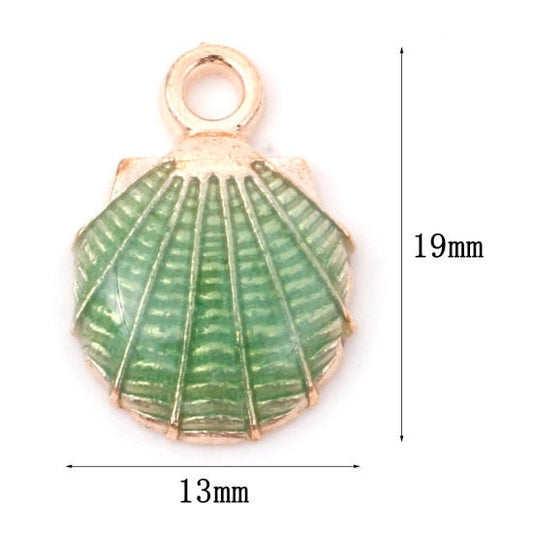 Green shell charm, sea shell green topped charm, gold plated shell charm
