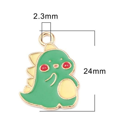 Green dinosaur charm, enamel with yellow pattern gold plated charm