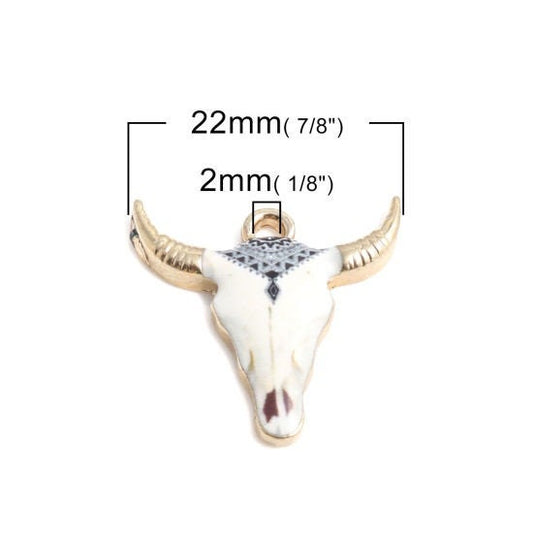 Cow head charm, white cow head with black diamond pattern, enamel gold plated charm