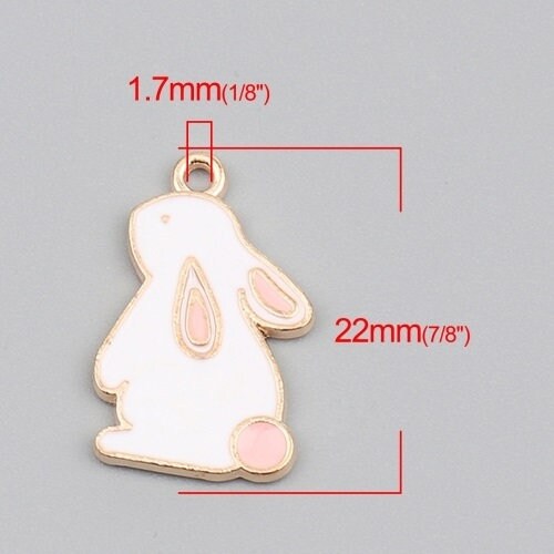 White Easter bunny charms enamel rabbit pendant charm gold backed metal charms white and pink bunny