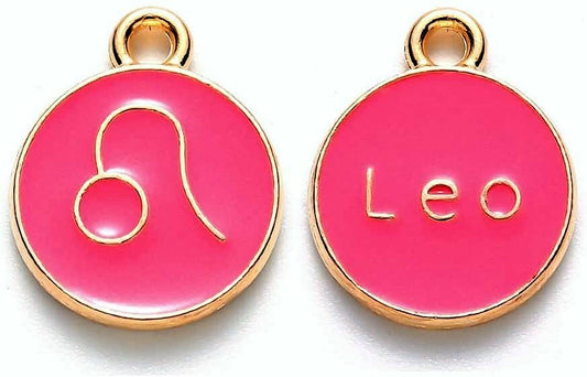 Zodiac Enamel hot pink charm set, 12 double-sided charm with two different images on each side