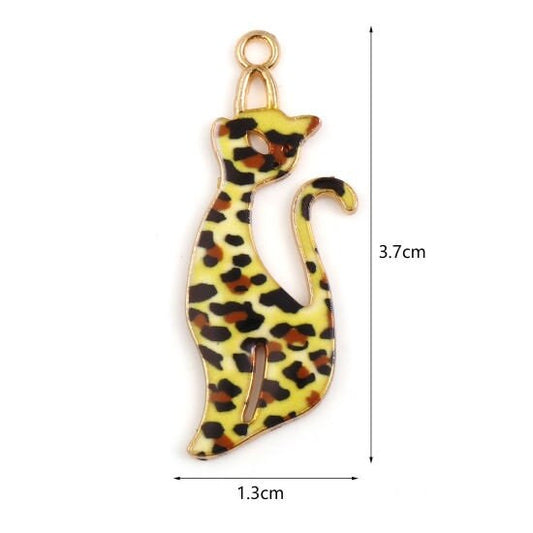 Leopard pattern cat charm, large enamel charm , pendant or keychain charms
