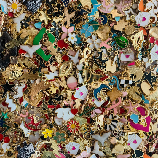 Mixed enamel charms, assorted bulk styles in a mix of colors and styles, new pieces added weekly