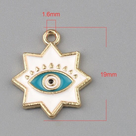 Star Evil eye charm, white enamel with blue eye charms , gold back pendant charms