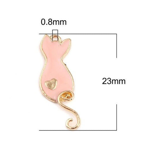Cat charm outline, enamel cat with gold plated backs and curly tail and heart on cat butt blue cat