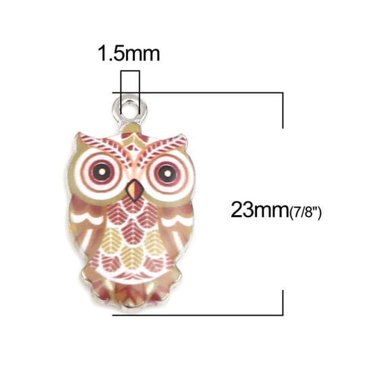 Brown Owl charms fancy patterned color enamel top alloy brown and gold owl styles charm metal charm lot silver back