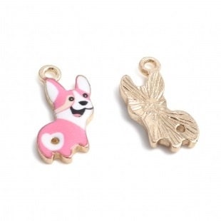 Pink Dog charm enamel top alloy corgi dog charm metal charm lot fantasy dog charm pink and white dog