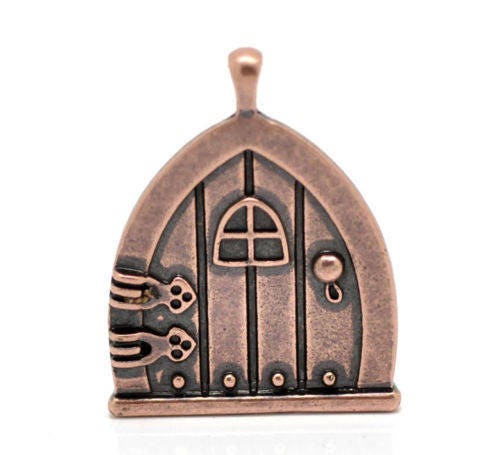 Fairy Doors Tibetan Antique Style House Charm Pendant large Copper Tone