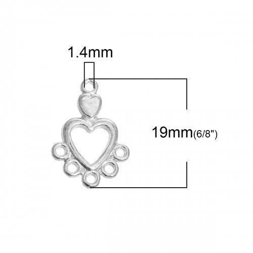 Heart cutout connector charm, Silver plated 5 hoop heart finding