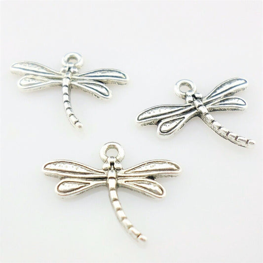 Dragonfly charm lots, curved body dragonfly silver one sided mix