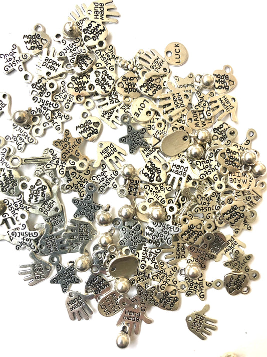 Handmade with love Bulk silver Charms Lot Silver charms just for you made with love assorted lot tab charms