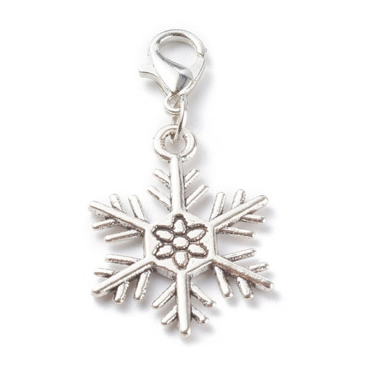 Christmas charms, lobster clasp charms as singles or set of all 6 snowflake, santa. christmas tree, wreath, snowman, stocking clip on