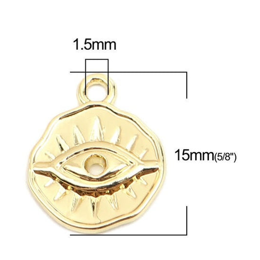 Gold Evil eye charm raised surface charm with pattern all in gold plated