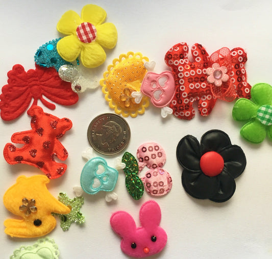 • Assorted Applique Lot , mixed colors and styles , styles stars flowers skulls handbags rabbits stars hearts teddybears
