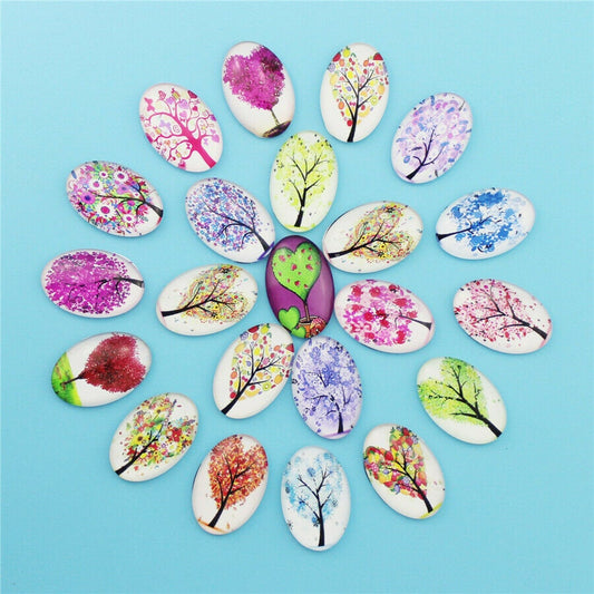 • Tree cabochon, Glass oval cabochon tree lot for jewelry pendant charm mix trees  18mm x 25mm , clearance