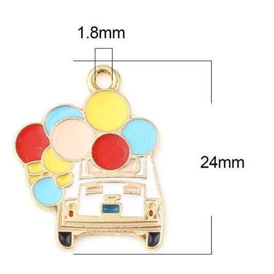• Clearance Car with balloon charm enamel charm gold plated white car charm color balloon charms