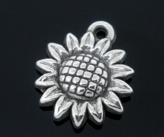 • Sunflower large charms, metal coated acrylic charm, silver flower lightweight charm