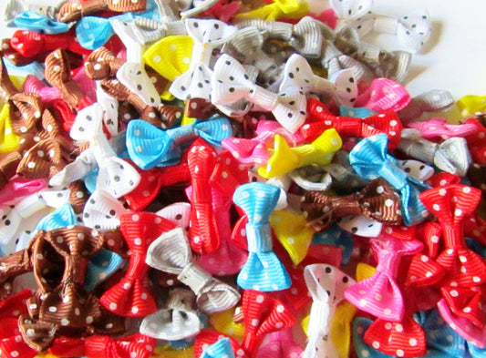 mixed Small Grosgrain Ribbon Craft Bows Mixed Selection Polka Dot Bows assorted color bow lot