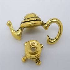 Teapot Bead Cap, gold 3D charm with top and bottom, two piece sets