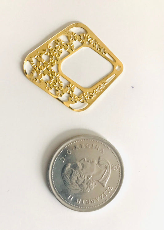 Gold Filigree Pendants, triangle Rhombus, Golden 30mm long lightweight gold tone finding
