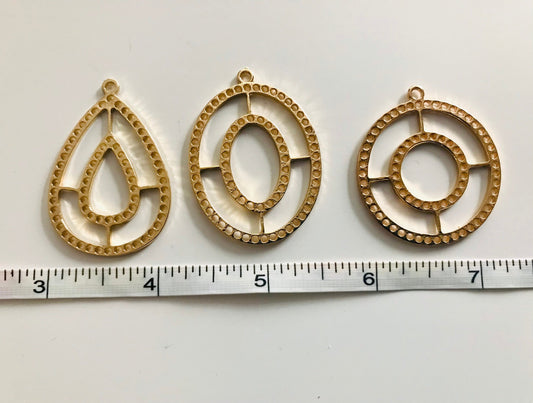 Gold bezel set, pendant charm set, gold plated Open bezel charms, set of 8 styles for resin or clay , DIY resin charms