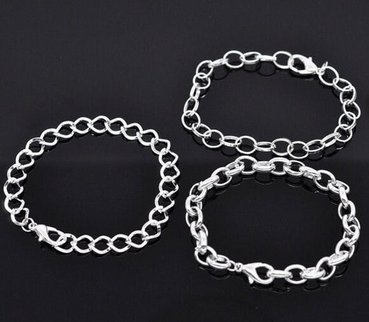 Bulk assorted silver plated 12 piece bracelet mixed chain lot 4 styles lightweight charm bracelet chaing finding large link