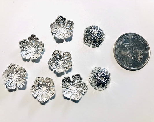 Silver Filigree bead caps 14mm flexible moldable caps silver plated bead cap light finding lot