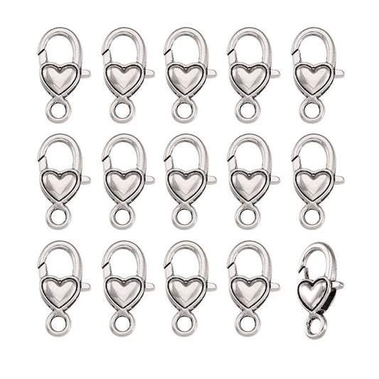 Lobster clasp, Silver Heart Lobster Clasp Flower Clasps Silver Bracelet pendant clip connector clasp large clasp