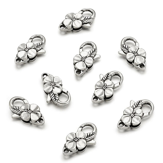 Silver Flower Lobster Clasp Flower Clasps Silver Bracelet pendant clip connector clasp large clasp with leaf