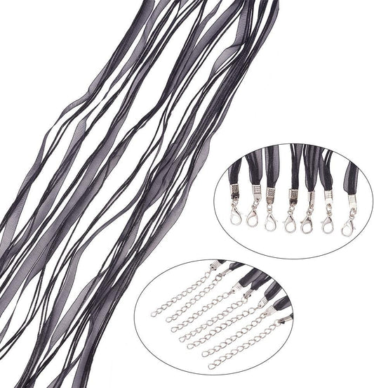 Organza Pendant, Black cord DIY ribbon chain, for making necklaces